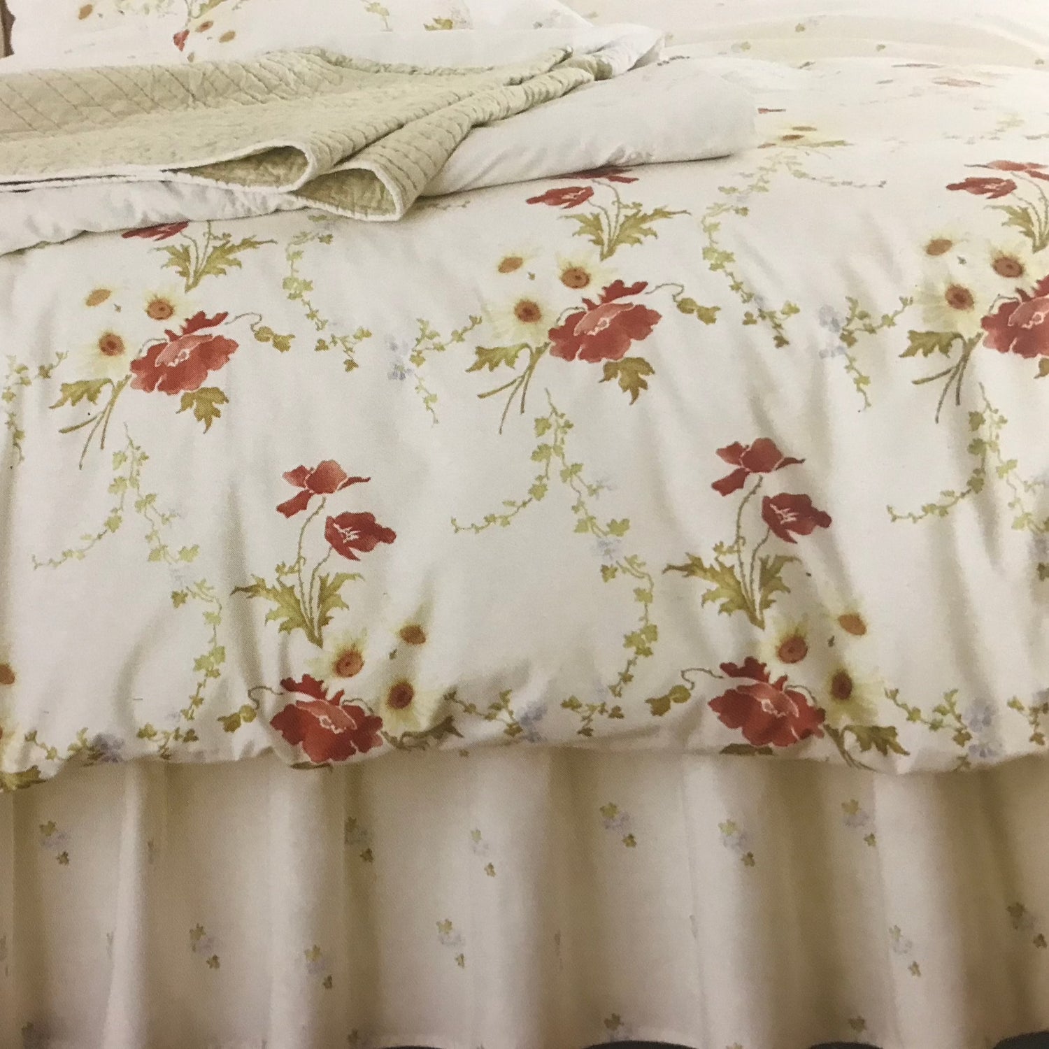 Poppy Duvet Set by Belledorm, Country Diary Collection, this beautiful floral bedding is so enchanting, set on cream background with poppy's and small blue flowers, featuring an embroidery anglaise trim. The Country Diary of an Edwardian lady has become a modern classic, and is the inspiration behind the collection. 100% cotton percale. Matching valance sheet available to purchase separately.